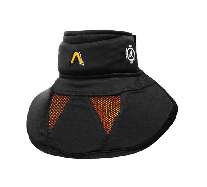 Profesionální brankařský chránič krku Aegis Interceptor Goalie Neck Guard určený pro nejnáročnější brankáře. Špičkový nákrčník od kanadského výrobce firmy AEGIS. Tato firma se specializuje na vývoj a výrobu výbavy pro kontaktní sporty a ozbrojené složky. Nákrčník spojuje díky použitým materiálům všechny požadavky moderního hokejisty - vysoký komfort, ochranu před úderem a ochranu před prořezáním od nože brusle. Skelet nákrčníku je vyroben z 100% polyesteru, vnitřní část nákrčníku je tvořena Kevlarem a Para-Aramid vlákny, což jsou materiály odolné proti prořeznání bruslí. Nákrčník je opatřen čtyřmi kapsami do kterých je vložená speciální patentovaná D3O® pěnová výztuha o tloušťce 4mm. Tato patentovaná pěna je díky použité technologii schopna absorbovat až 5x více energie, než běžně používané HD pěny. Rovněž díky své konstrukci umí reagovat na intenzitu úderu. Čím vyšší úder, tím tvrdší se pěna stává. Nákrčník jako celek je testován v laboratořích a splňuje bezpečnostní požadavky mezinárodně uznávaných normem CE a B.N.Q.