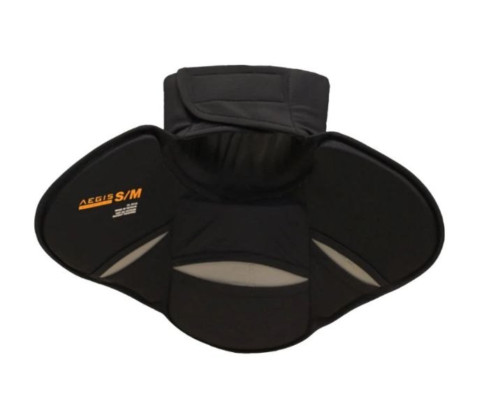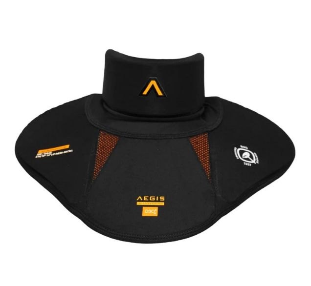 Profesionální brankařský chránič krku Aegis Interceptor Pro-G Goalie Neck Guard určený pro nejnáročnější brankáře. Špičkový nákrčník od kanadského výrobce firmy AEGIS. Tato firma se specializuje na vývoj a výrobu výbavy pro kontaktní sporty a ozbrojené složky. Nákrčník spojuje díky použitým materiálům všechny požadavky moderního hokejisty - vysoký komfort, ochranu před úderem a ochranu před prořezáním od nože brusle. Skelet nákrčníku je vyroben z 80% nylonu a 20% elastanu, vnitřní část nákrčníku je tvořena 100% Kevlarem a Para-Aramid vlákny, což jsou materiály odolné proti prořeznání bruslí. Nákrčník je opatřen čtyřmi kapsami do kterých je vložená speciální patentovaná D3O® pěnová výztuha o tloušťce 10mm. Tato patentovaná pěna je díky použité technologii schopna absorbovat až 5x více energie, než běžně používané HD pěny. Rovněž díky své konstrukci umí reagovat na intenzitu úderu. Čím vyšší úder, tím tvrdší se pěna stává. Nákrčník jako celek je testován v laboratořích a splňuje bezpečnostní požadavky mezinárodně uznávaných normem CE a B.N.Q. Pro dosažení optimální výšky chrániče v oblasti límce lze vnitřní pěnovou výztuhu zastřihnout na požadovanou výšku tak, aby se nákrčník nezařezával do brady.