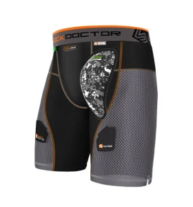 SHOCK DOCTOR kompresní hokejové šortky 375 Ultra PowerStride Hockey Short w/AirCore™ Hard Cup CCM suspenzorové kalhoty Compression Jock Pants JR