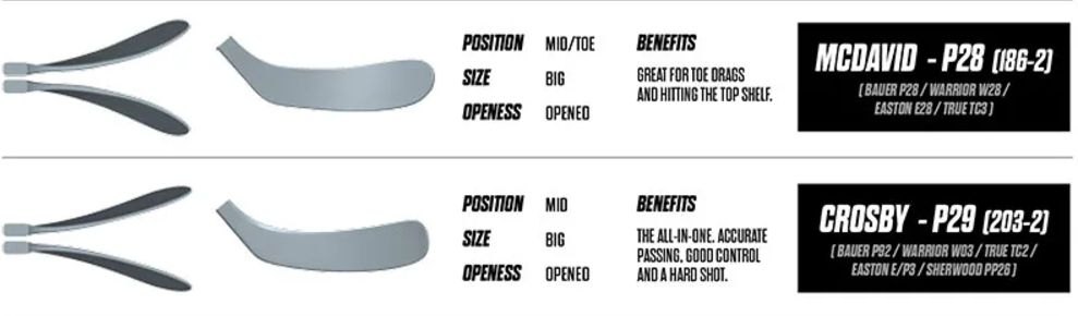 Měkká pata čepele zajišťuje citlivý kontakt s pukem při nahrávkách, zatímco tuhá špička maximalizuje přesnost střelby.