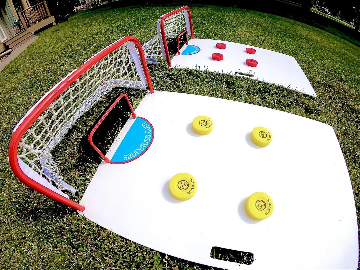 Ideální tréninková hra pro zlepšení hokejových dovedností, ať už na zahradní akci s grilem či odpočívání u bazénu, na pláži.. prostě kdekoli! Tréninková hra Sauce Toss je oblíbená i mezi profesionály, kteří tak pilují své žabičky, rozcvičují se před zápasem, nebo se chtějí jen odreagovat. To vše se zárukou perfektní zábavy.